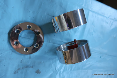 | Since this is a very early GT350, the original steering wheel is the 16 inch version with a unique hub assembly. Early 1965 GT350 Mustang Shelby Restoration. ©Virginia Classic Mustang Inc |
